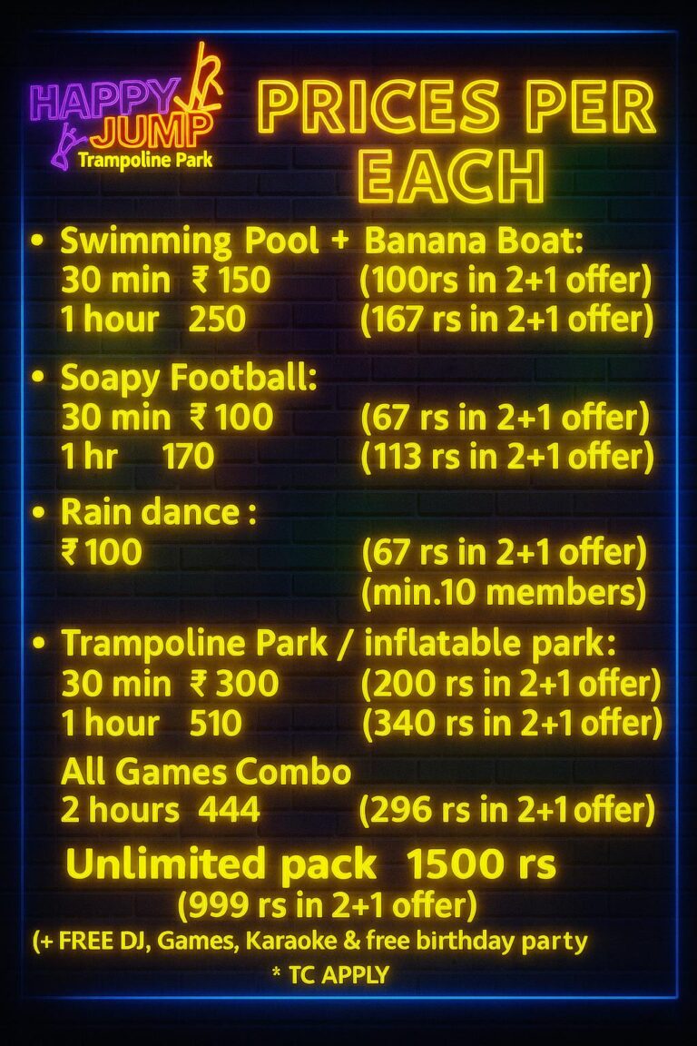 HAPPYJUMP 2+1 OFFER! All games fun starting from ₹67, Combo Offer ₹296. Book Now: 9000519848.